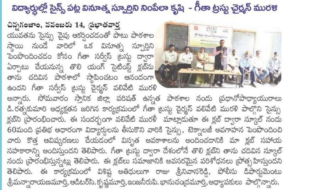 AP2201 GYST CLUB Launching ZPHS, Chinnaganjam |