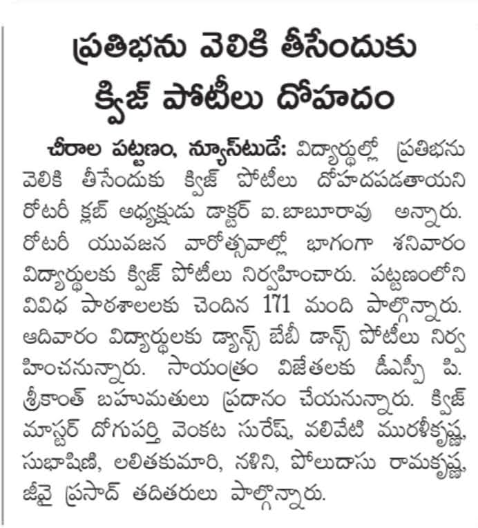 | Venue | : | Rotary Club, Chirala |