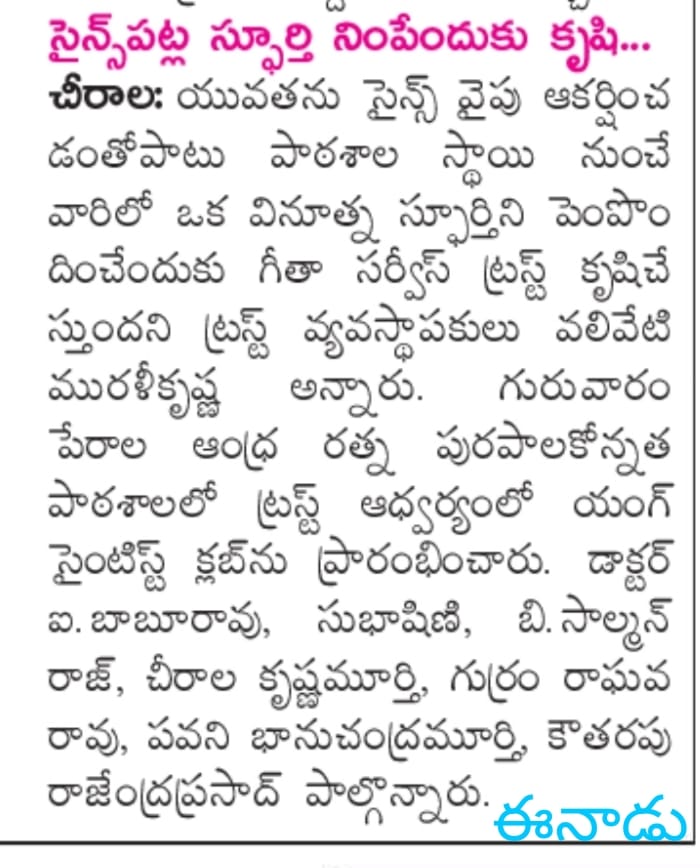 | Venue | : | ARM High School, Perala, Chirala |