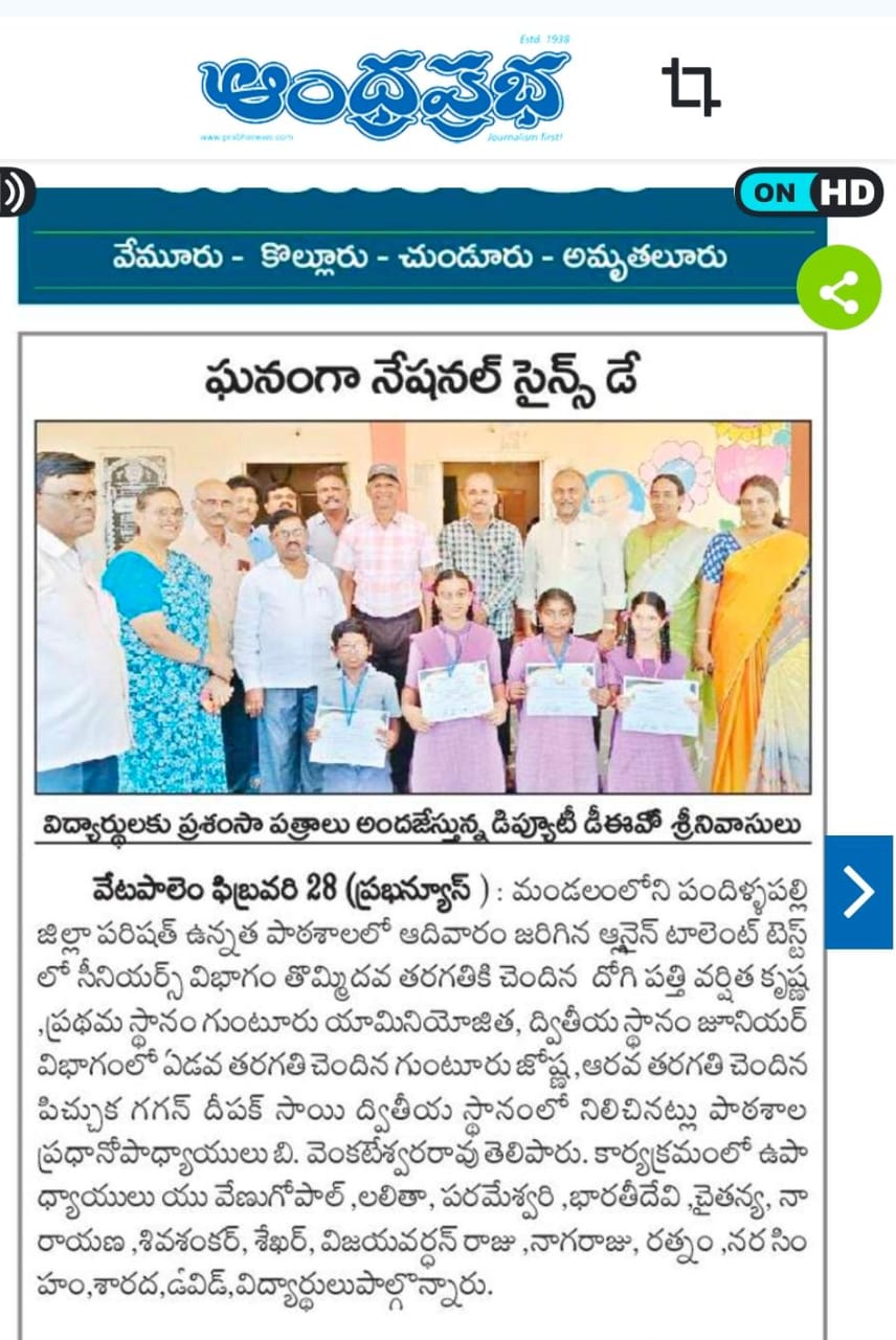 | Project Name | : | GYS Swaminathan Science Day Talent Test 2024 - Vetapalem Mandal |