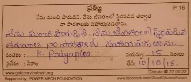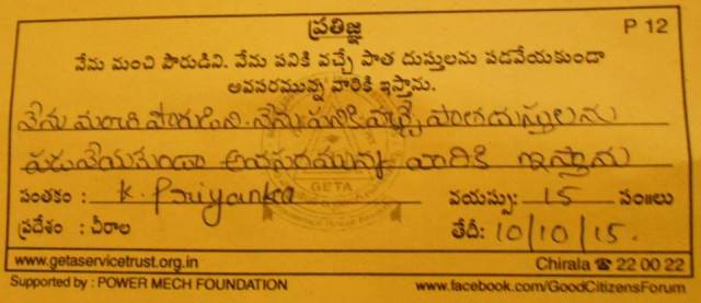 Good Citizens Forum - KGBV High School, Kotha Peta, 10-Oct-2015 |