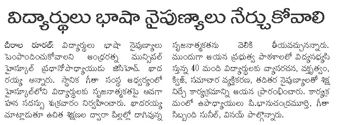 | Workshop Venue | : | ARM High School, Perala |