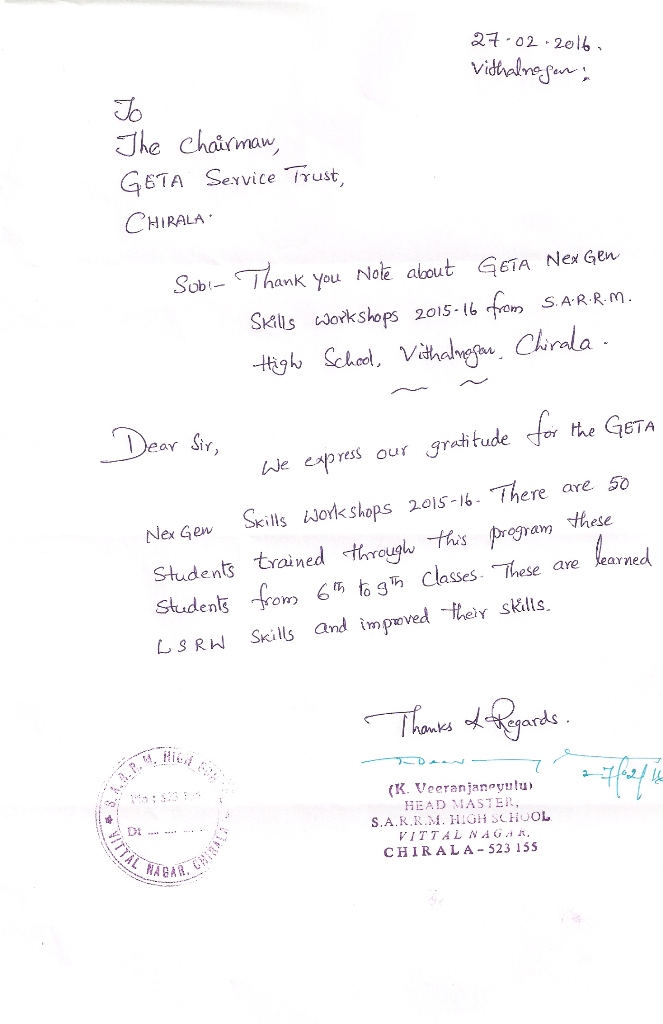 GETA NexGen Program 2015 - 16 CONCLUSION in SARRM High School |
