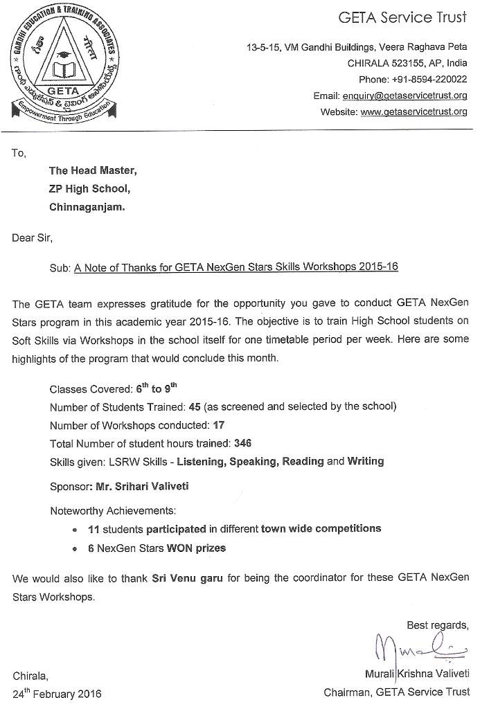 GETA NexGen Program 2015 - 16 CONCLUSION in ZP High School, CJM |