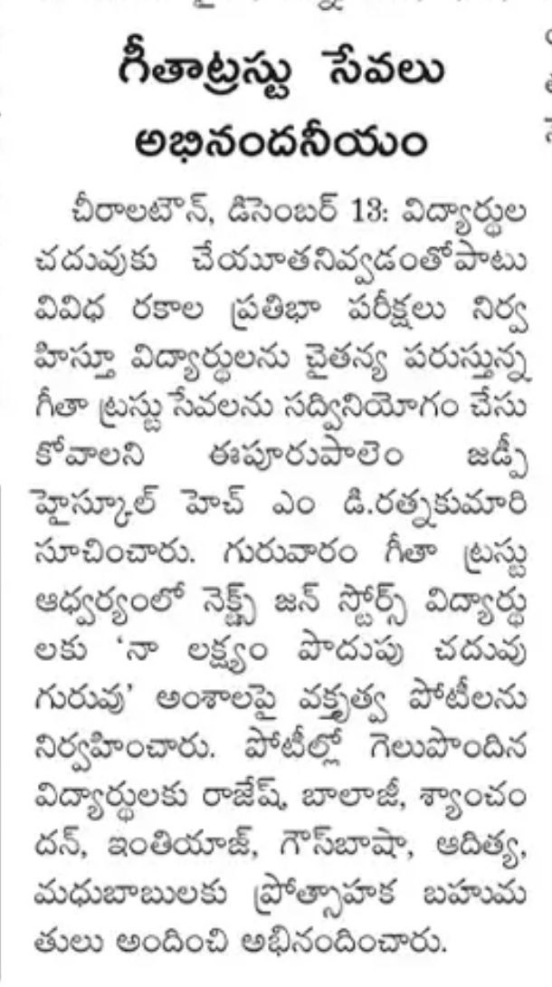 | Workshop Venue | : | ZP Boys High School, Epurupalem |