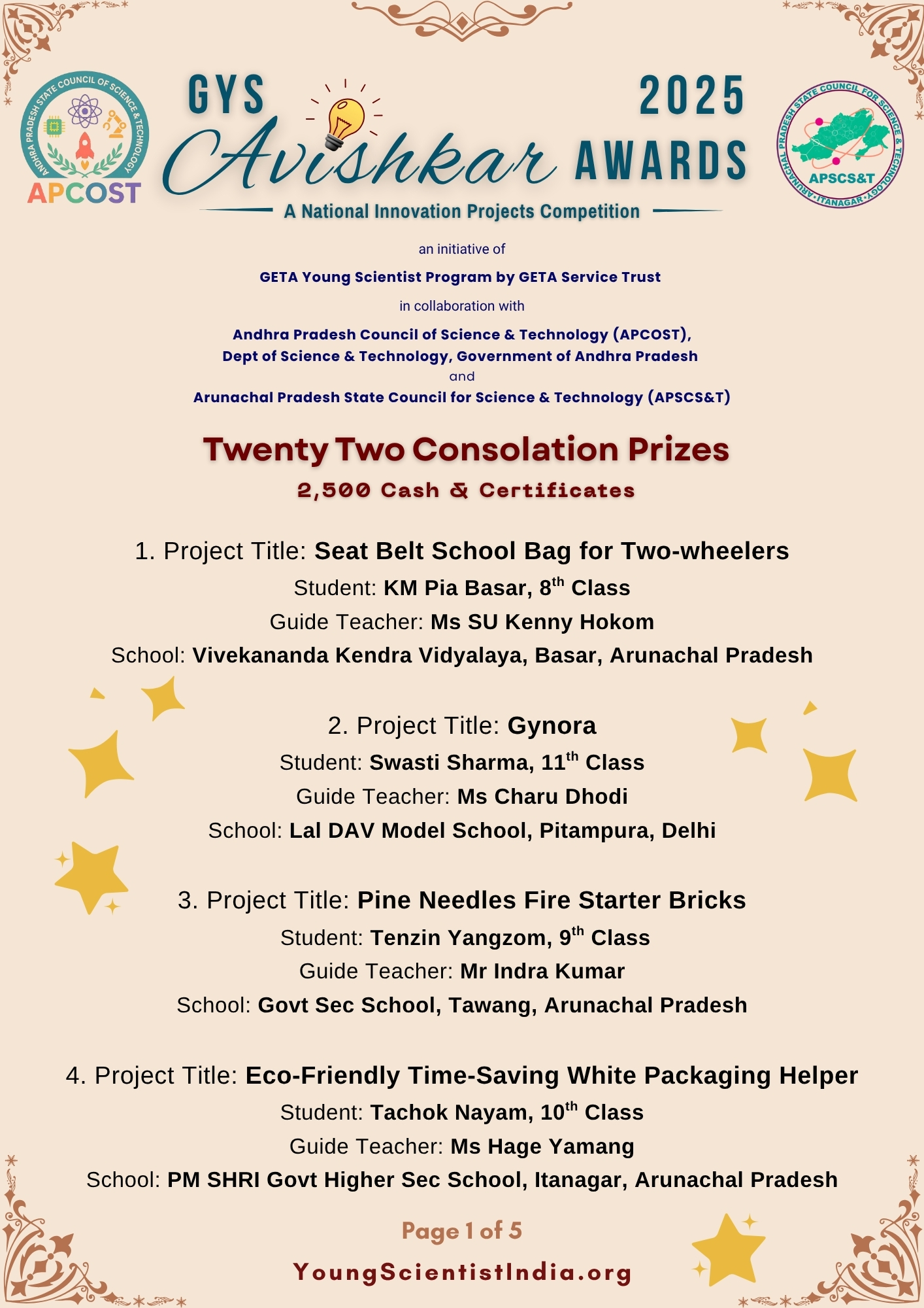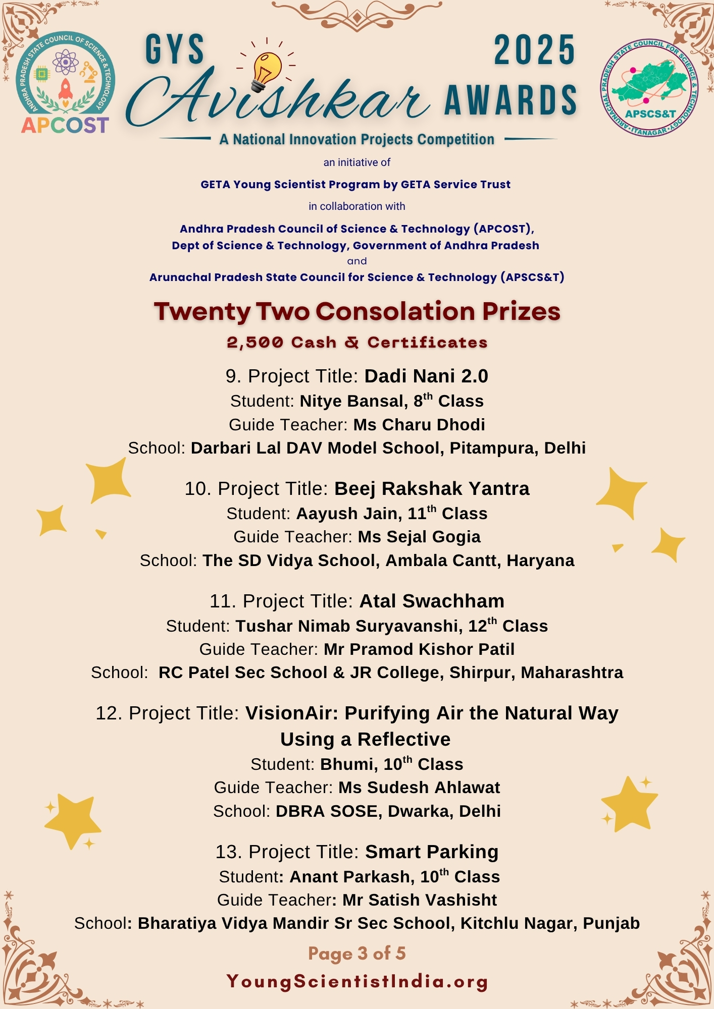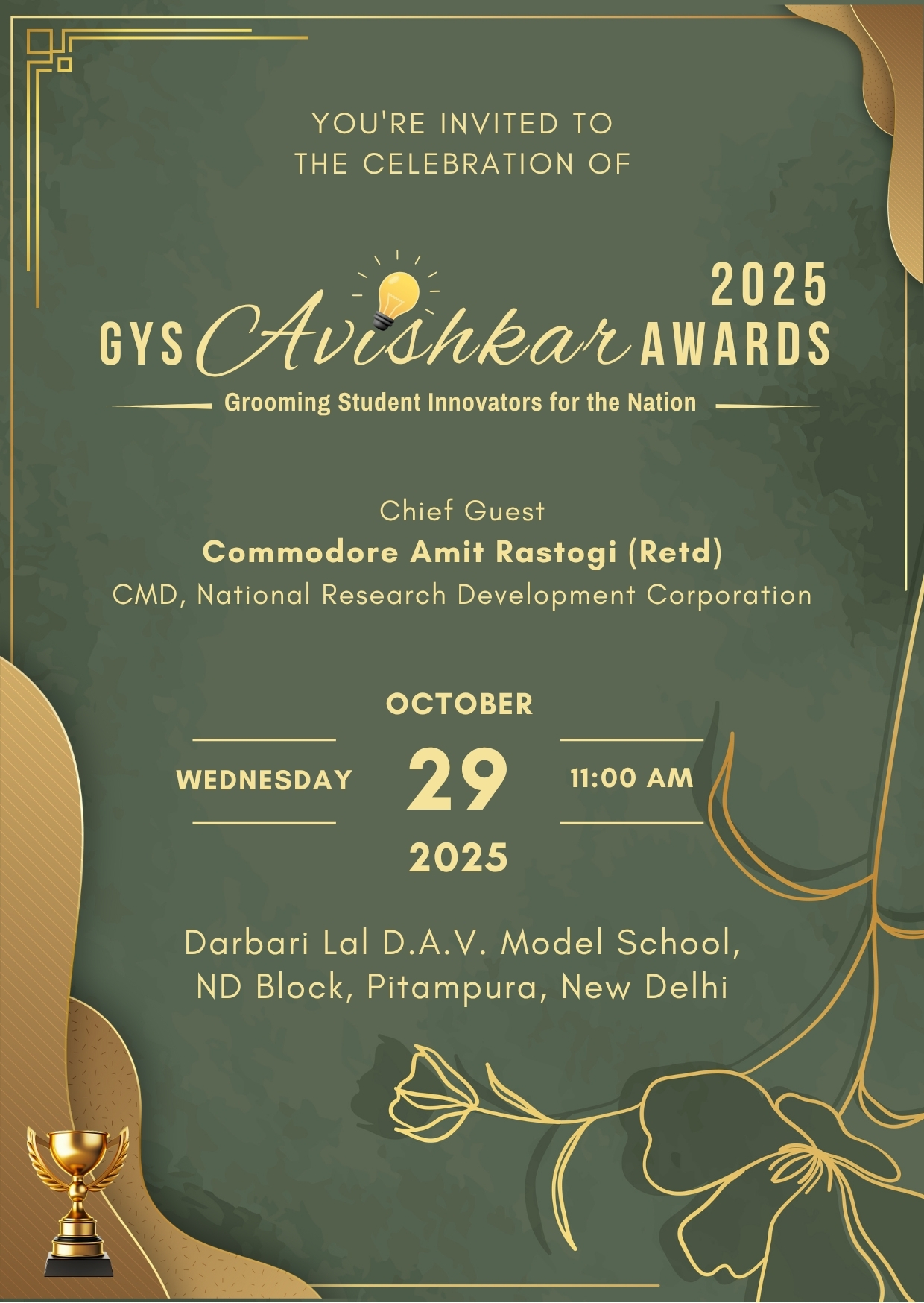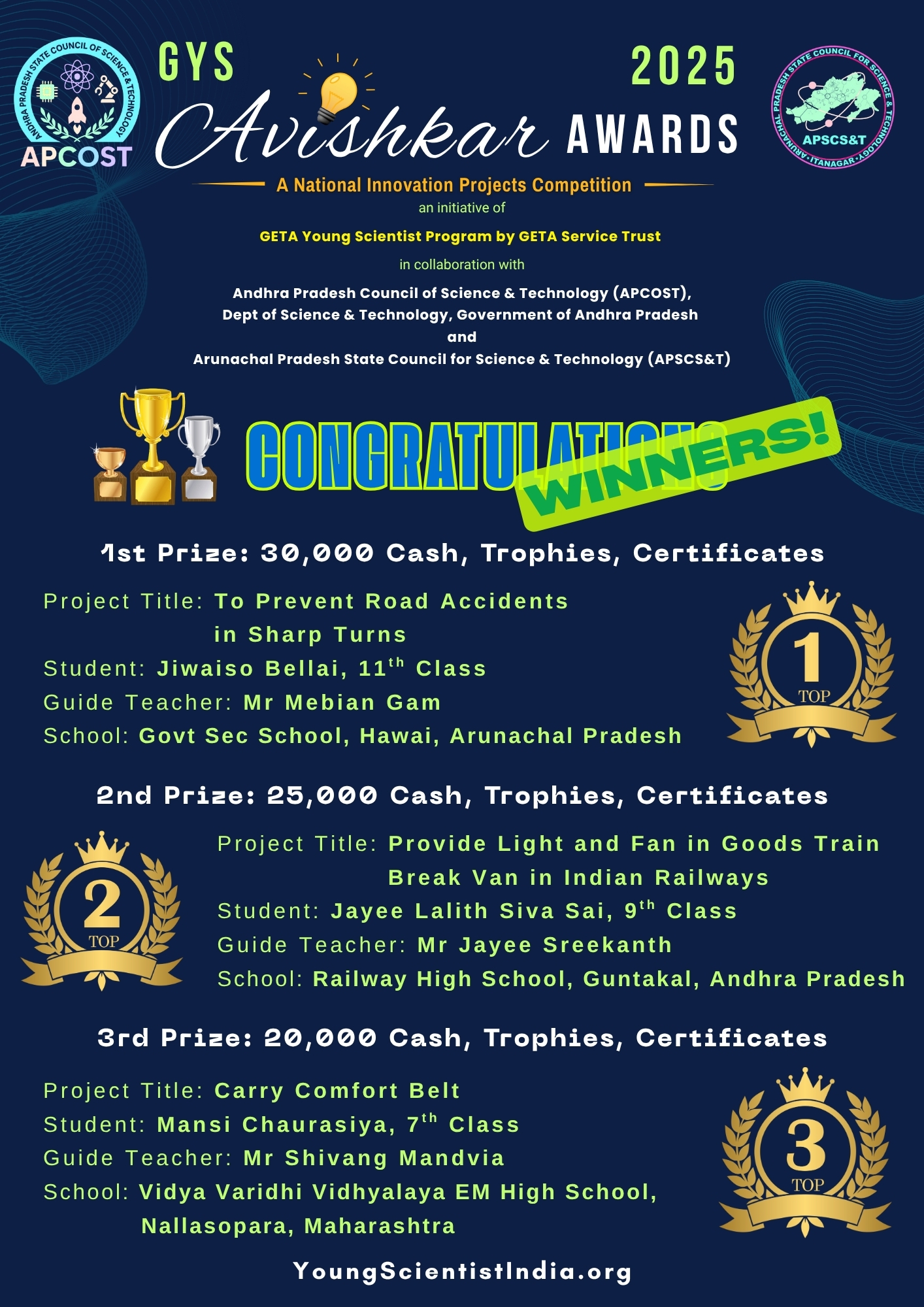 Dear Students and Teachers, You may have noticed that many Winners of GYS Avishkar Awards 2025 are from Northern States. So, we will have the Awards Function in DELHI this year.