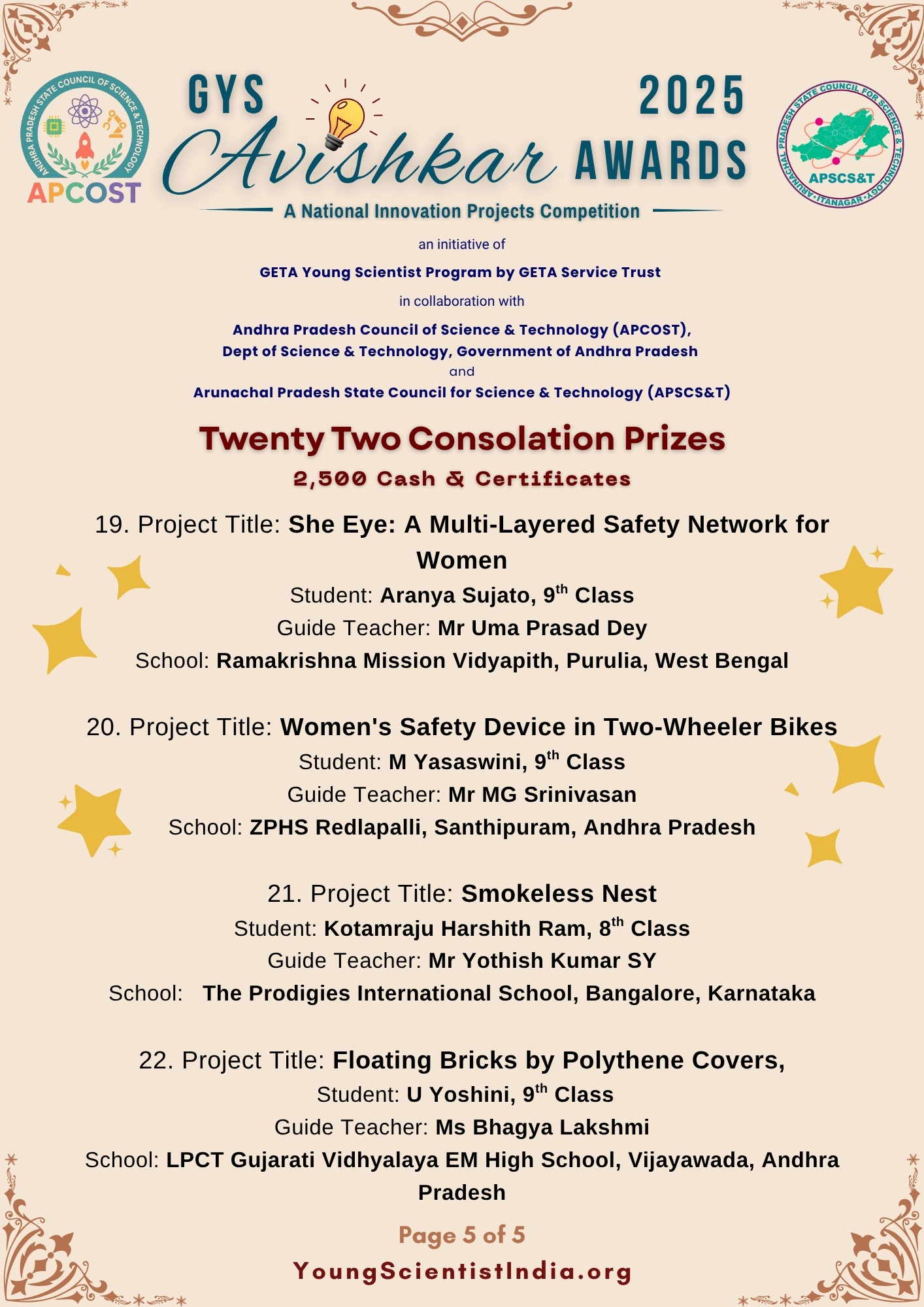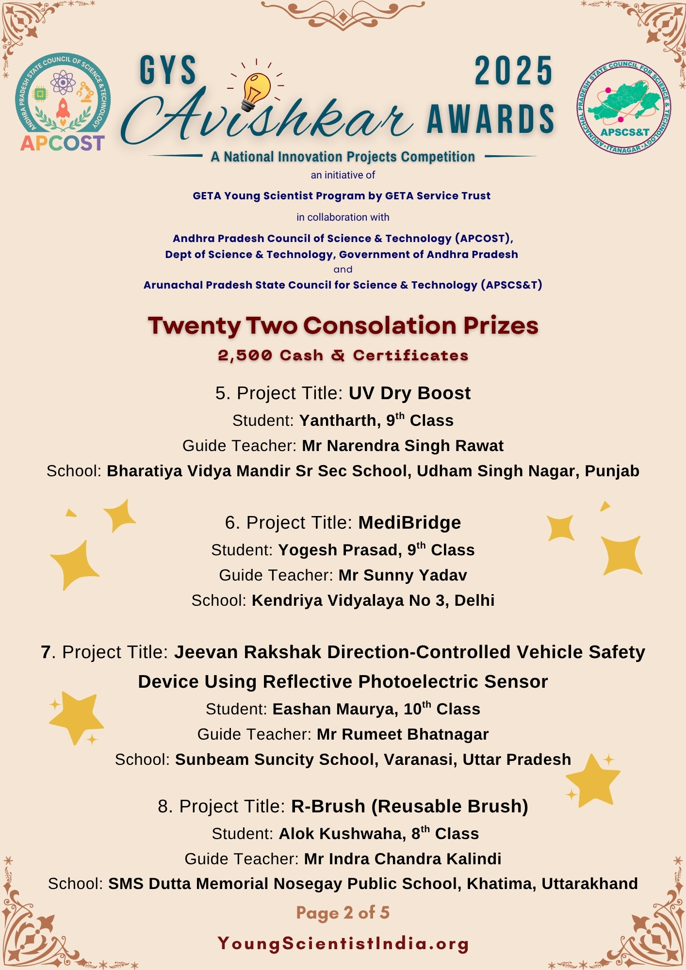 The same condition is applicable to APCOST sponsored state level prizes in Andhra Pradesh.