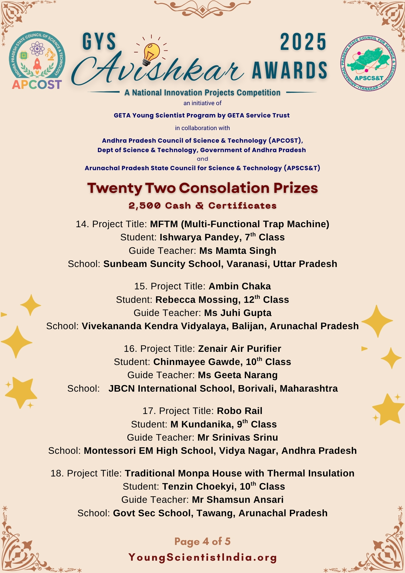 Most of the Science Competitions happen between October and January in an Academic Year. And, understandably, these Competitions give prizes to Students. So, these Aavishkar Awards are designed with two unique features...