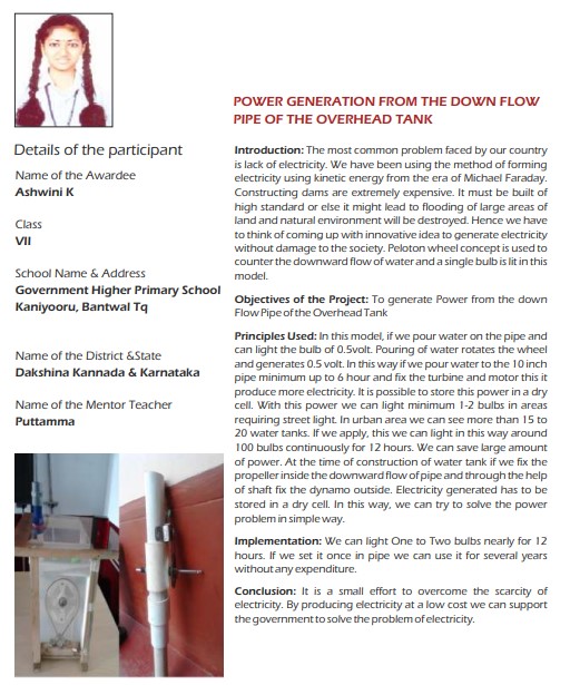 Power Generation From The Down Flow Pipe Of The Overhead Tank