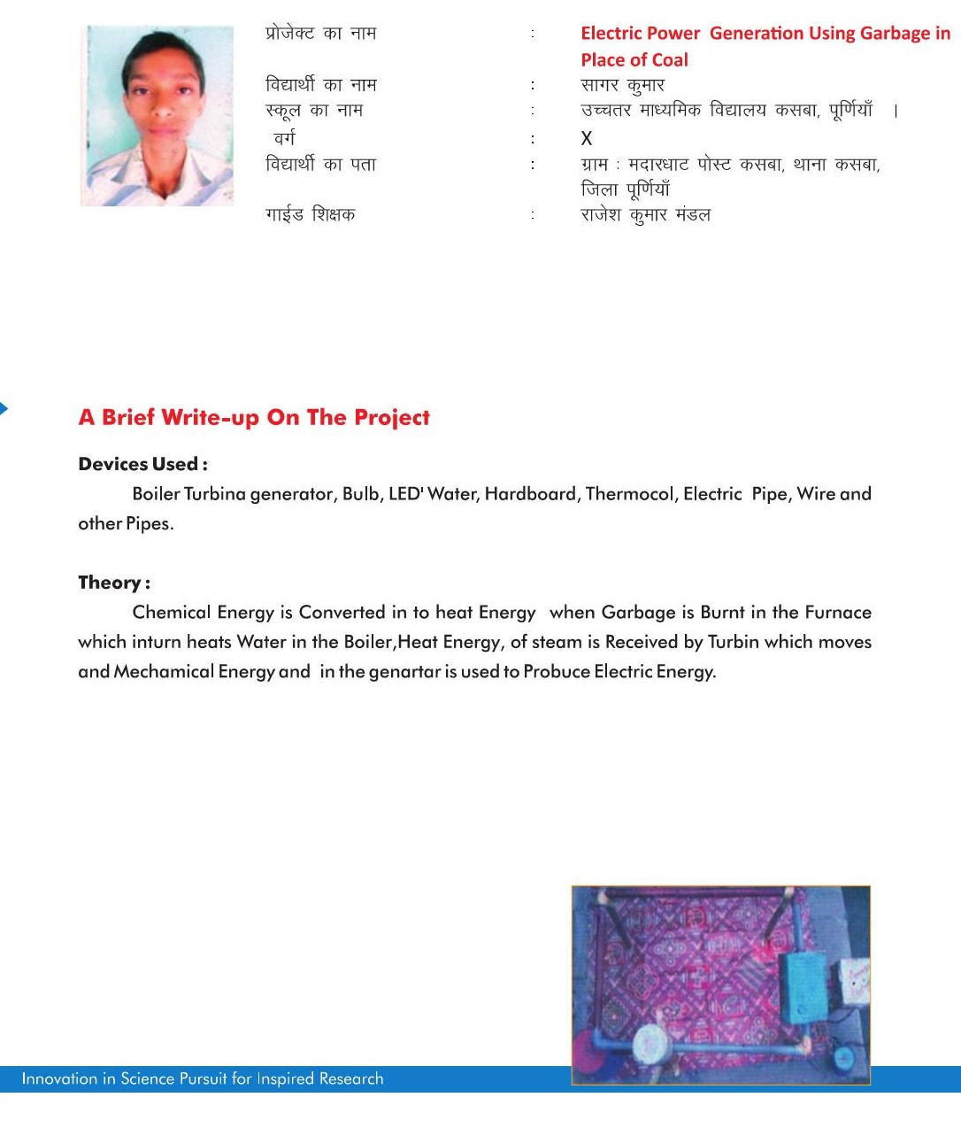 Electric Power Generation Using Garbage In Place Of Local