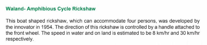 Waland- Amphibious Cycle Rickshaw