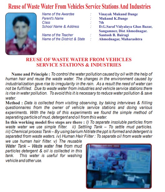 Reuse Of Waste Water From Vehicles Service Stations And Industries