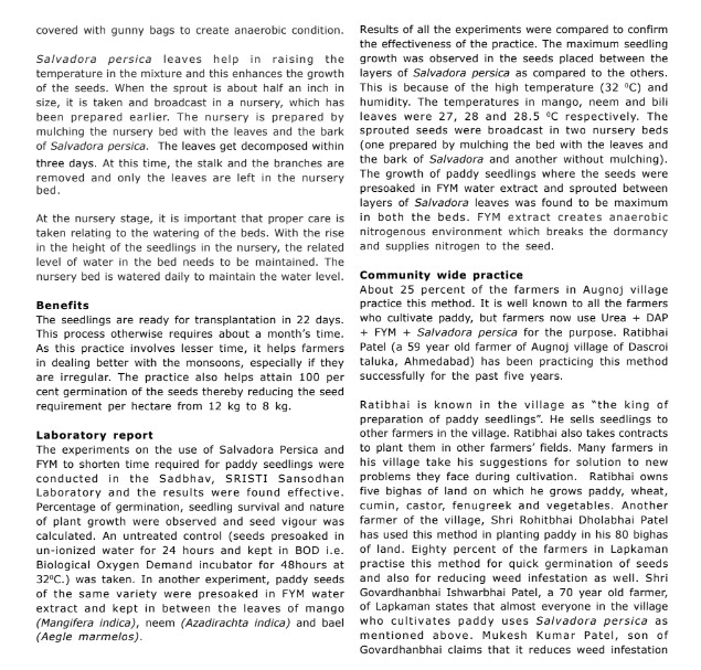 Mulching Salvadora Leaves For Promoting Paddy Seedling Growth