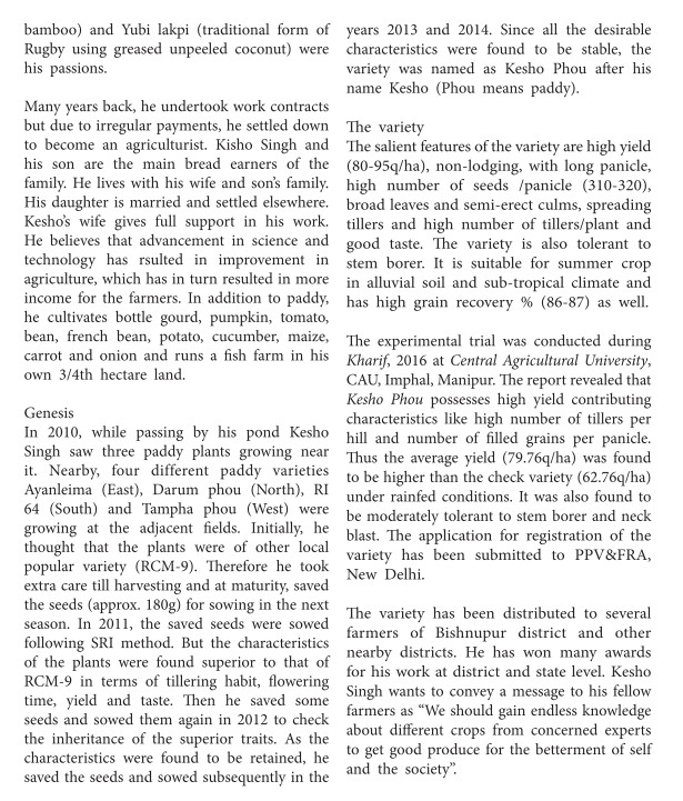 Kesho Phou - Improved Paddy Variety
